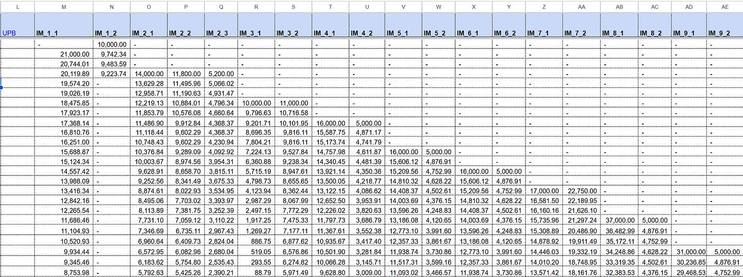 The actual and expected unpaid balance (UPB) is tabulated, so you can see the UPB stack