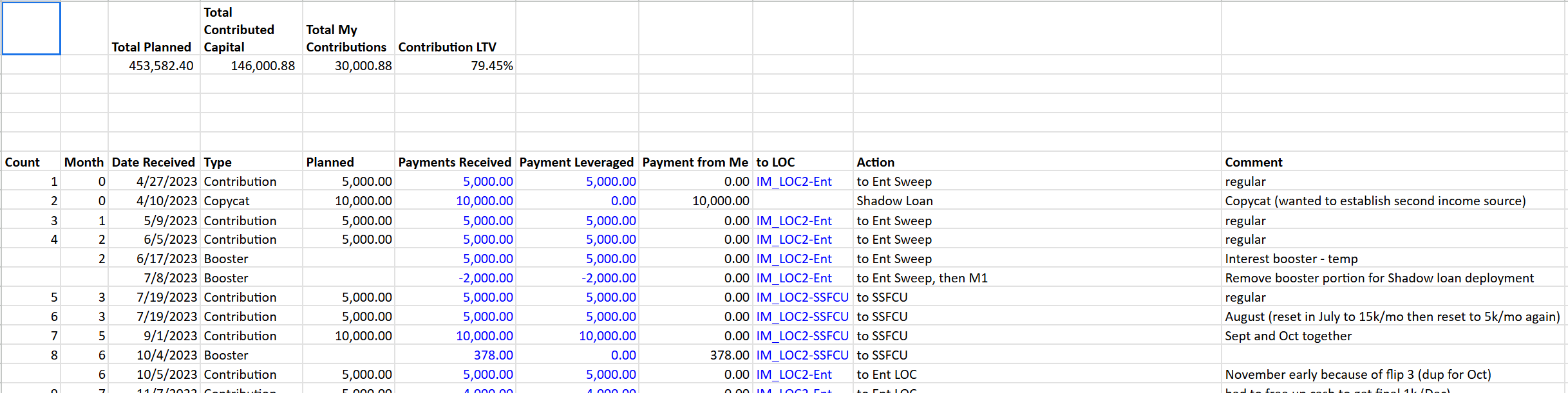 Supports leverage of contributions and boosters - if you borrow to make contributions or boosters, then it tracks the difference between contributed capital and your capital. (I did this because the main source of my contributions from the beginning was policy loans).