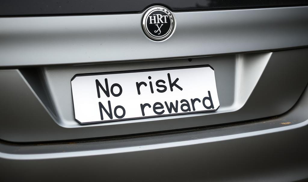 The bumper sticker claim is that there can be no reward without taking risk. Here’s where my mind goes:
