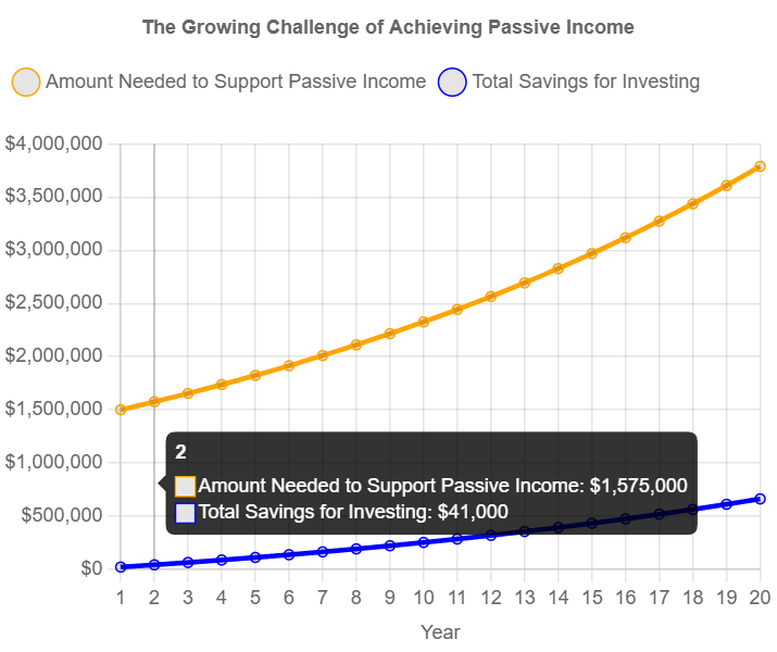 To summarize, the fundamental problem is that most of us simply can’t save enough money fast enough to have enough assets to generate the passive income we need for our lifestyle.